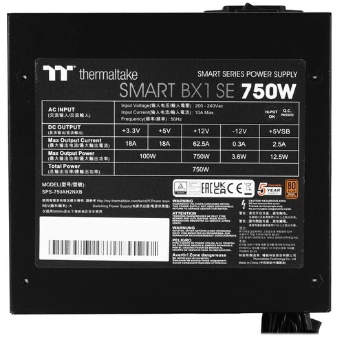 Блок питания THERMALTAKE 750 Вт, Smart BX1 SE 750 ATX, активный PFC, 120 мм, 80 PLUS Bronze (PS-SPD-0750NNSABE-2)