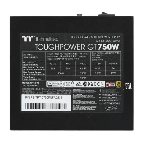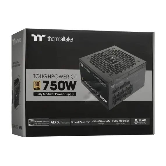 Блок питания THERMALTAKE 750 Вт, Toughpower GT ATX, активный PFC, 120 мм, 80 PLUS Gold, модульные кабели (PS-TPT-0750FNFAGE-3)