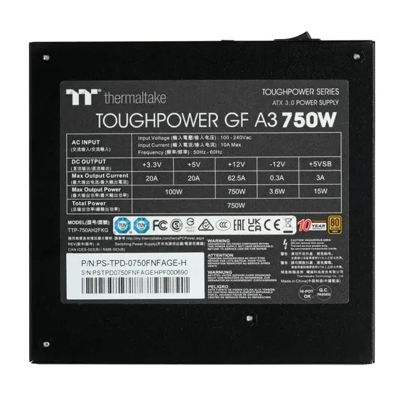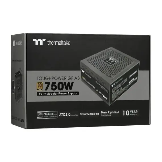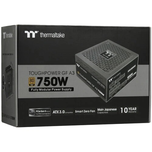 Блок питания THERMALTAKE 750 Вт, Toughpower GF A3 ATX, активный PFC, 120 мм, 80 PLUS Gold, модульные кабели (PS-TPD-0750FNFAGE-H)