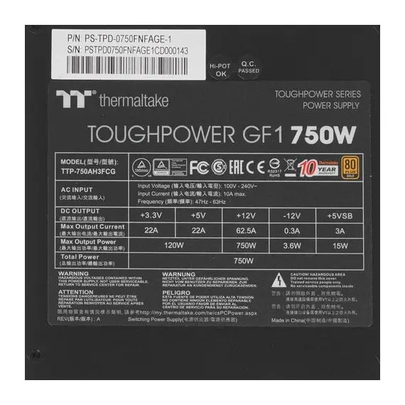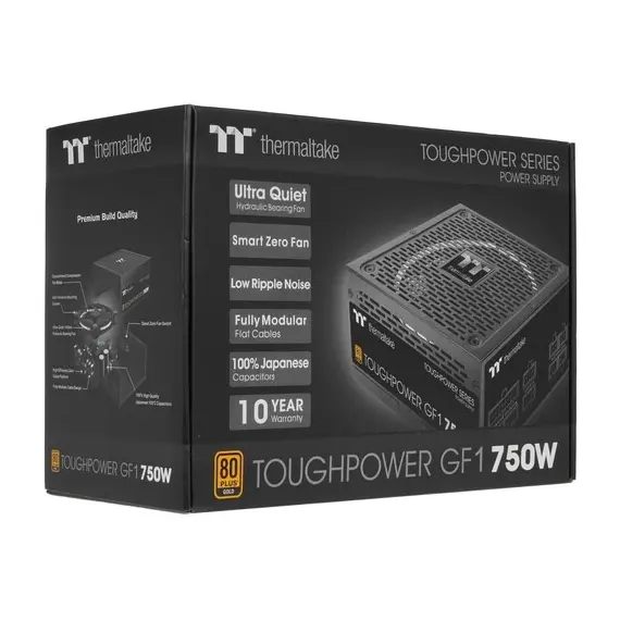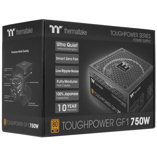 Блок питания THERMALTAKE 750 Вт, Toughpower GF1 ATX, активный PFC, 140 мм, 80 PLUS Gold, модульные кабели (PS-TPD-0750FNFAGE-1)