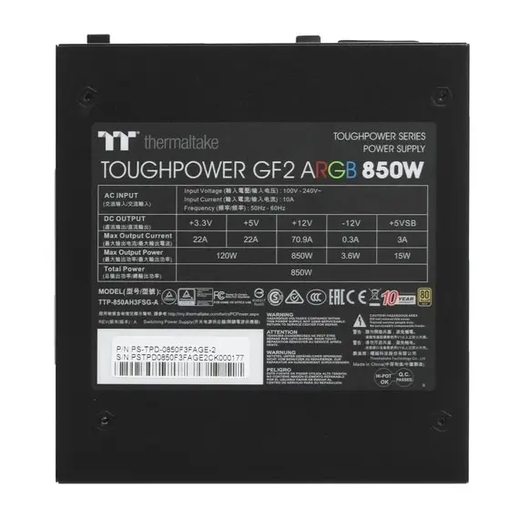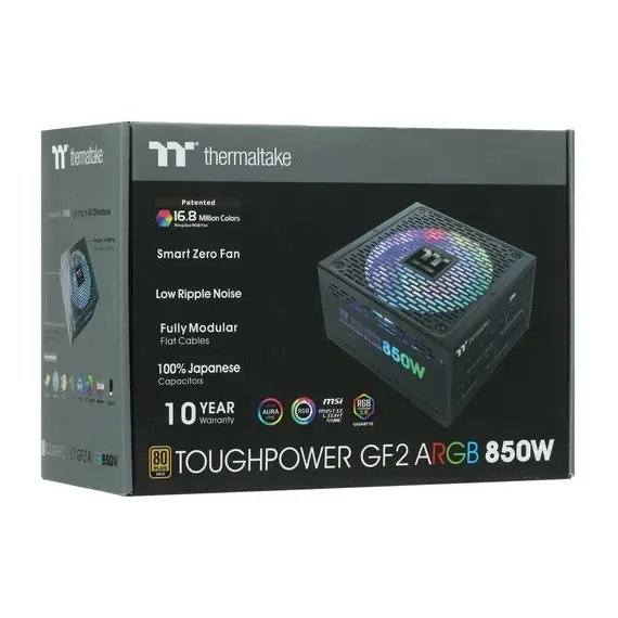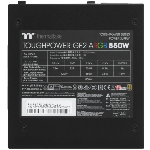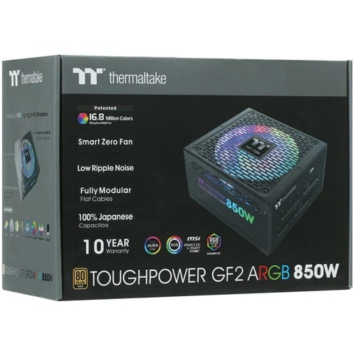 Блок питания THERMALTAKE 850 Вт, ToughPower GF2 ARGB ATX, активный PFC, 140 мм, 80 PLUS Gold, модульные кабели, подсветка (PS-TPD-0850F3FAGE-2)