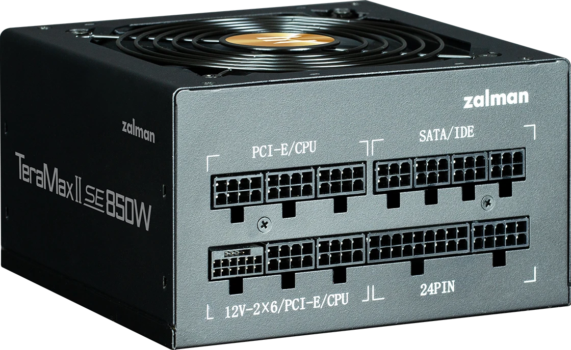 Блок питания ZALMAN 850 Вт, TeraMax II SE ATX, активный PFC, 120 мм, 80 PLUS Gold, модульные кабели (ZM850-TMX2SE)