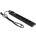 Блок распределения питания 5BITES для монтажа в стойку 19", 8 розеток, PVC (огнеупорный) корпус, шторки, входной коннектор IEC-320-C14 (кабель приобретается отдельно) (PDU819P-08)