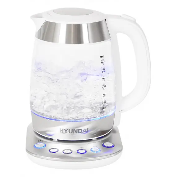 Чайник электрический HYUNDAI 1.7л. 2200Вт белый/серебристый (корпус: стекло) (HYK-G4033)