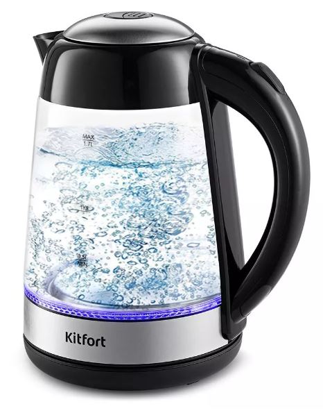 Чайник электрический KITFORT 1.7л. 2200Вт черный (корпус: стекло) (КТ-6125)