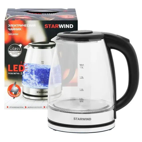 Чайник электрический STARWIND 1.8л. 1800Вт черный/серебристый (корпус: стекло) (SKG2050)