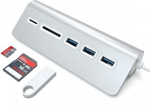 Док-станция SATECHI и кардридер Aluminum USB 3.0 Hub & Card Reader. Интерфейс USB. 3 порта USB 3.0 , слоты для карты памяти SD и microSD. Цвет серебряный. Aluminum USB 3.0 Hub & Card Reader (ST-3HCRS)