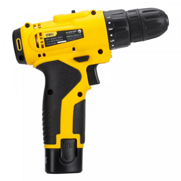 Дрель-шуруповерт DELI аккумуляторная (1АКБ+ЗУ, 12В, 1,5А*ч, 22Нм, картон) (DL-DZ12-E1A1)