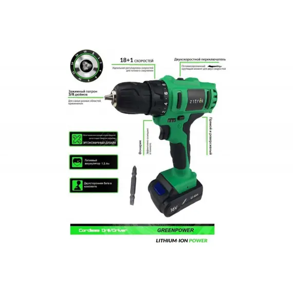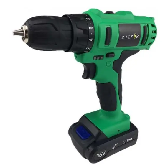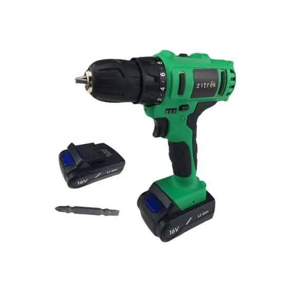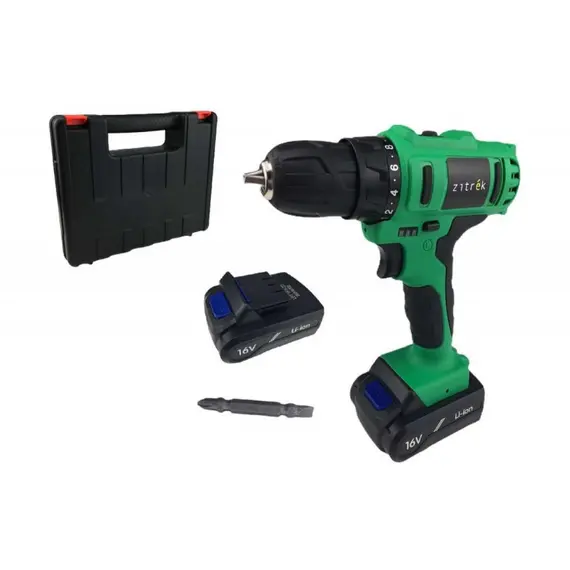 Дрель-шуруповерт ZITREK аккумуляторная Greenpower 16-Li { 16В, Li-ion аккумулятор 2шт, ЗУ, кейс, бита } [] (063-4075)
