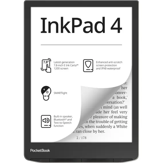 Электронная книга PocketBook InkPad 4 оснащена 7.8-дюймовым E Ink экраном для комфортного чтения с минимальной нагрузкой на глаза. Устройство поддерживает множество форматов, имеет встроенную память для хранения книг и длительное время работы от аккумулятора.