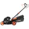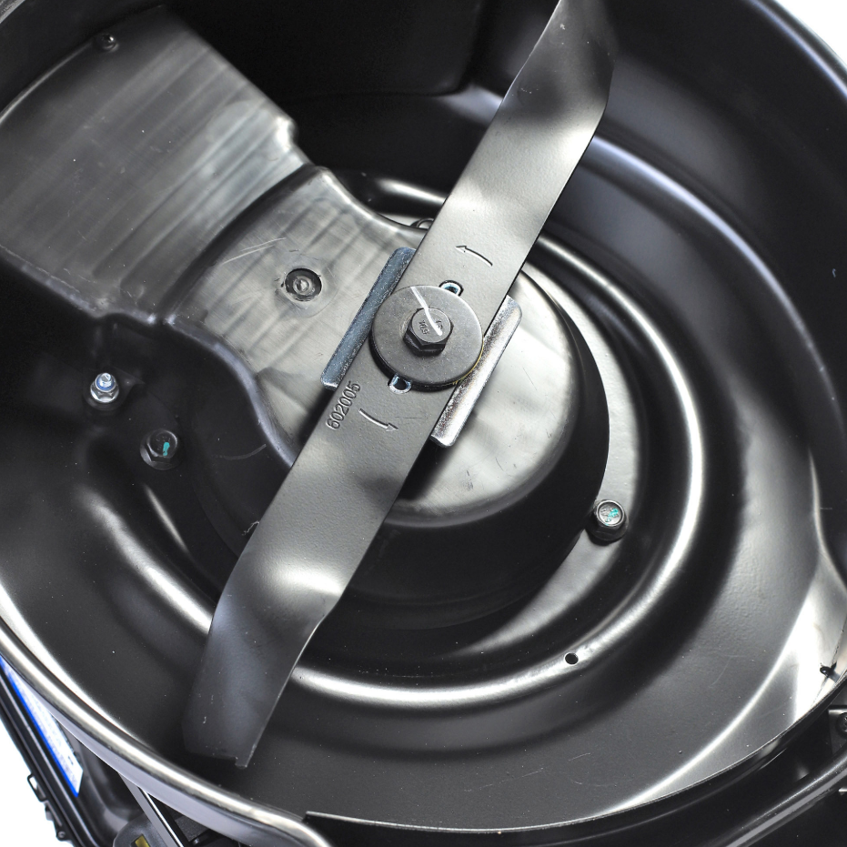 Складная рукоятка, съёмный травосборник и компактный размер позволяют легко транспортировать и хранить газонокосилку.