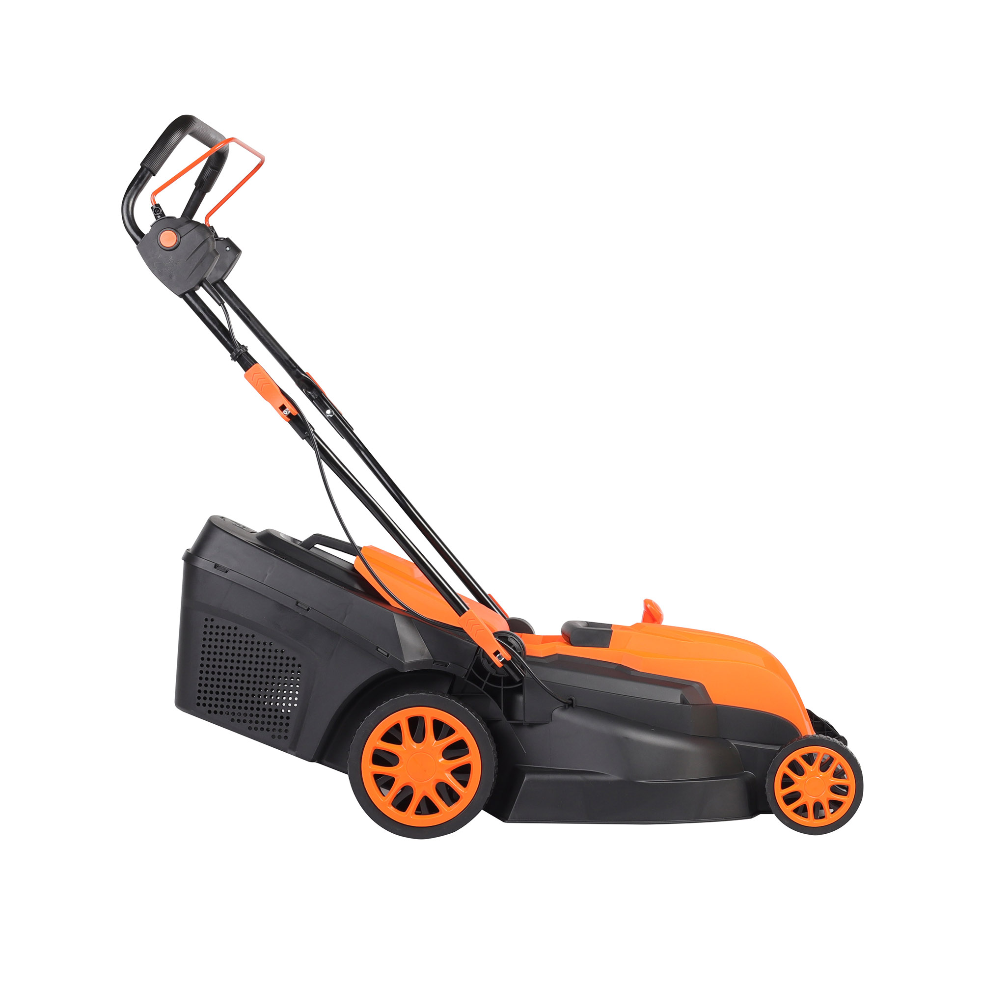 Складная рукоятка, съёмный травосборник и компактный размер позволяют легко транспортировать и хранить газонокосилку.