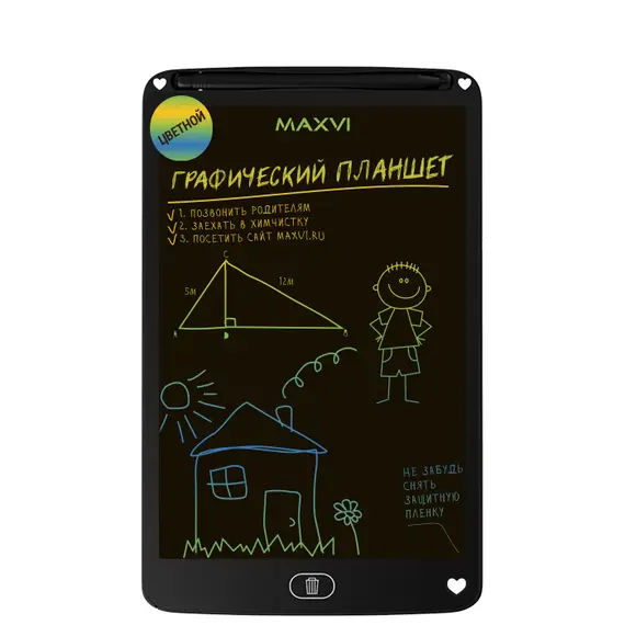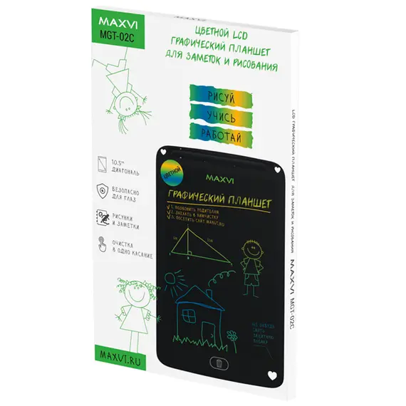 Планшет для рисования MAXVI MGT-02С black 10.5", LCD, цветной, чёрный