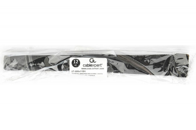 Хомут-липучка CABLEXPERT 11x200мм, черный, 12шт (VT-200x11BK)