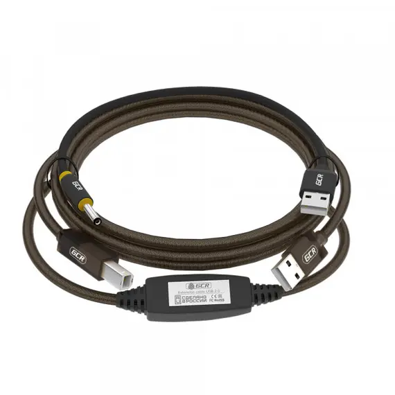 Кабель GREENCONNECT GCR для Принтера, МФУ, активный 5.0m USB 2.0, AM/BM, черно-прозр, с усилителем сигнала, разъём для доп.питания, 28/24 AWG (UECa5) (GCR-53779)