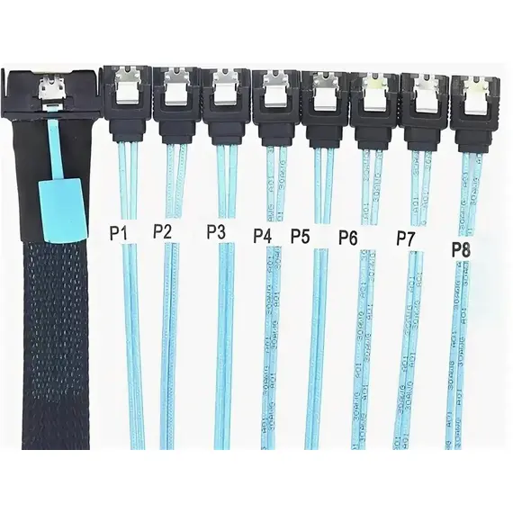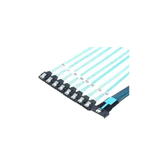 • Надежные прямые коннекторы: Оба конца кабеля (MCIO x8 74P и 8x SATA 7P) имеют прямой (Straight Type) форм-фактор с фиксаторами (HSG PH2.54), что гарантирует безопасное и стабильное физическое соединение.