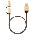 Кабель MAXVI MC-12MT gold, 2 в1, USB-A - microUSB/Type-C, 2A