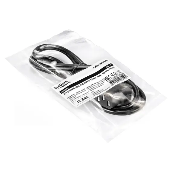 Кабель питания ExeGate Power EC-1P-С13(У)->С14/3x1.0Cu предназначен для соединения компьютерного оборудования, такого как мониторы, серверы или блоки питания, с источниками питания, например, с ИБП (источниками бесперебойного питания) или PDU (блоками распределения питания).