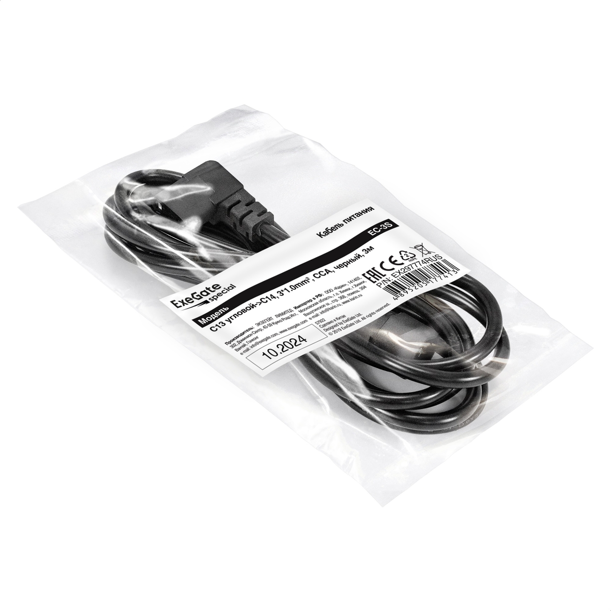 Кабель питания EXEGATE Special EC-3S (C13 угловой-C14, 3*1.0mm2, CCA, черный, 3м) (EX297774RUS)