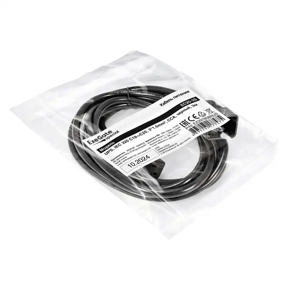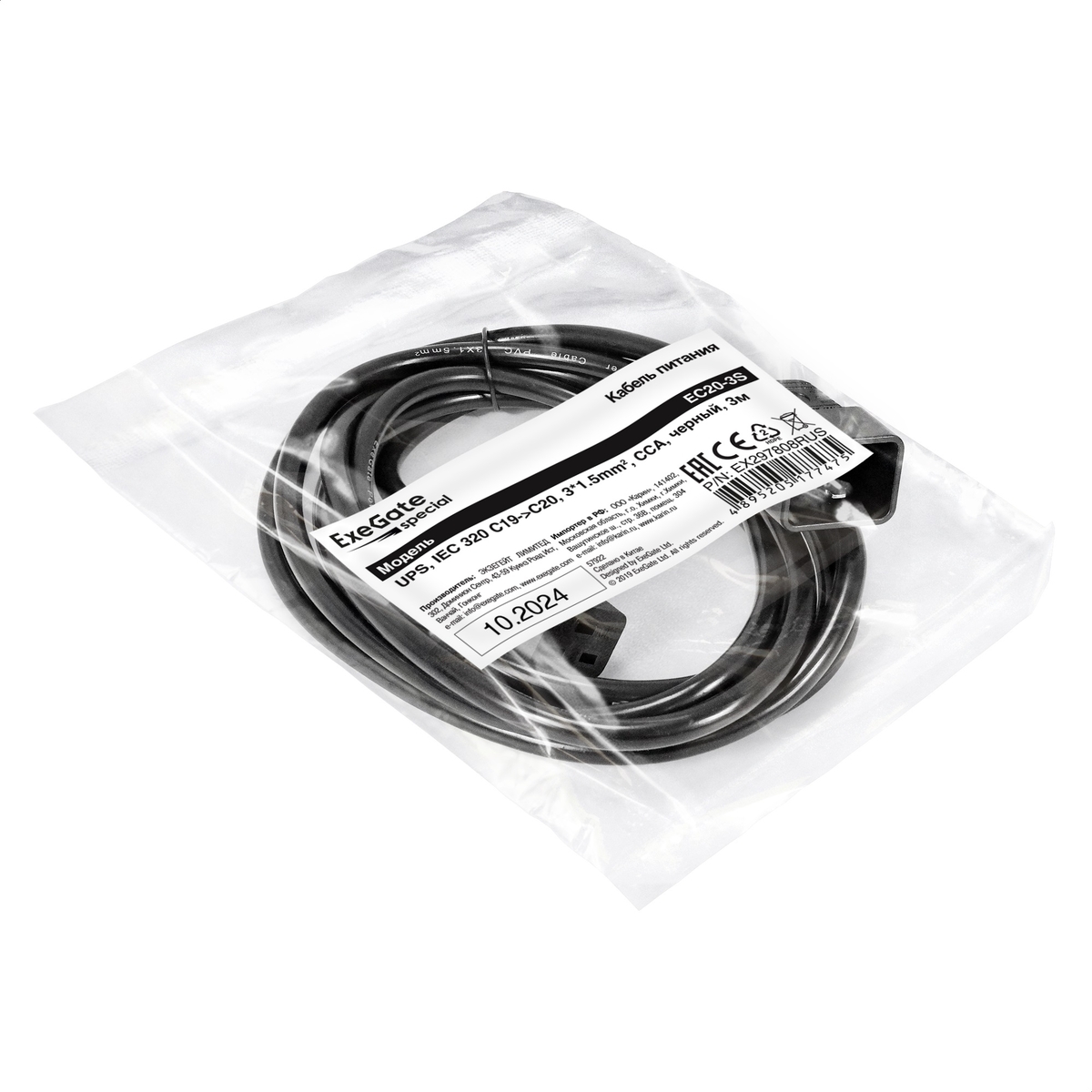 Кабель питания EXEGATE (UPS) Special EC20-3S (IEC 320 C19-C20, 3*1.5mm2, CCA, черный, 3м) (EX297808RUS)
