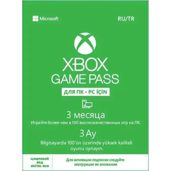Карта оплаты MICROSOFT подписка 3мес. Xbox Game Pass ПК (QHT-00003)