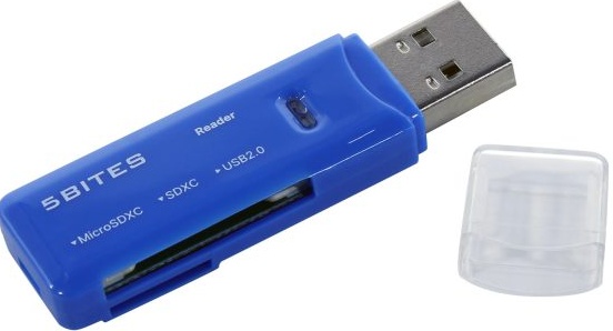 Картридер внешний 5BITES USB 3.0, для SD/TF, синий (RE3-200BL)