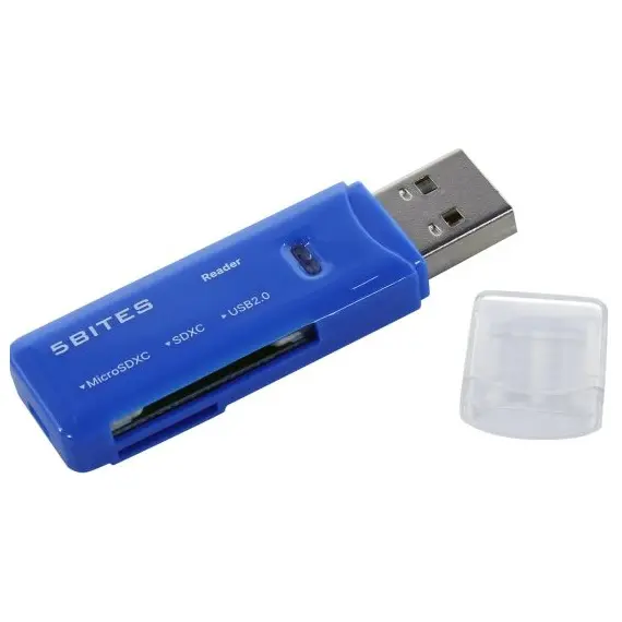 Картридер внешний 5BITES RE3-200BL в синем цвете — это компактное и стильное устройство с интерфейсом USB 3.0, предназначенное для быстрого чтения и записи данных с карт памяти форматов SD и Micro SD (TF).
