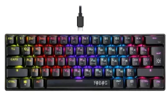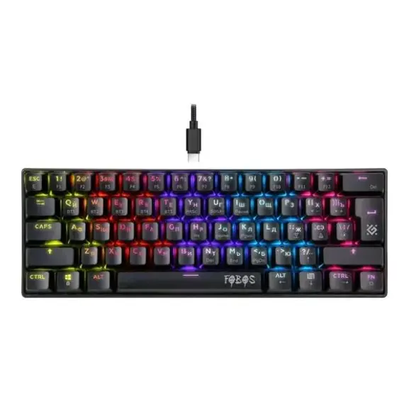 Клавиатура DEFENDER проводная/беспроводная (Bluetooth), механическая, переключатели Outemu Red, подсветка клавиш, USB, Fobos GK-011, чёрный (45011)