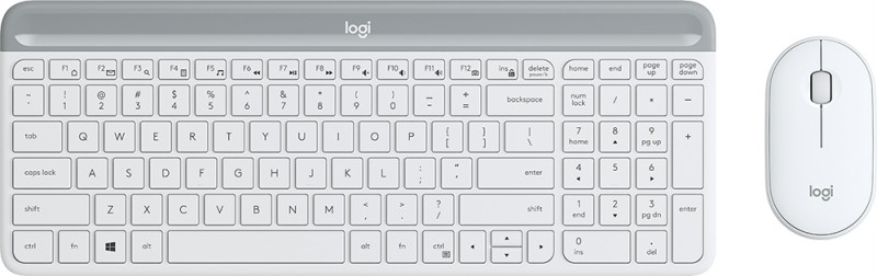 Клавиатура + мышь LOGITECH беспроводные, радиоканал, 1000 dpi, цифровой блок, USB, MK470 Slim Wireless Combo White, белый, серый (920-009207)
