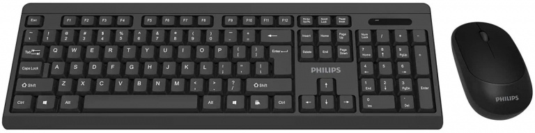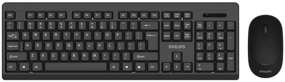 Клавиатура + мышь PHILIPS беспроводной комплект SPT6324, 2.4 GHz 104 клав/3 кнопки, 1600dpi, русская заводская раскладка, чёрный (SPT6324B/60)