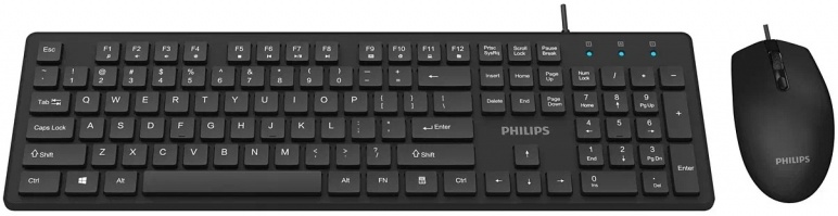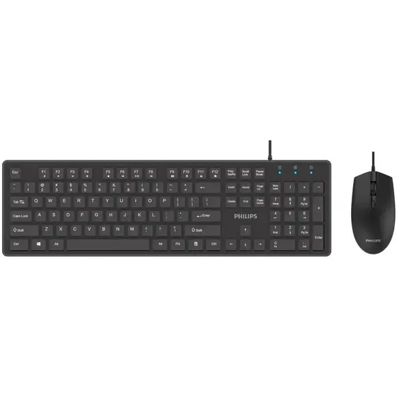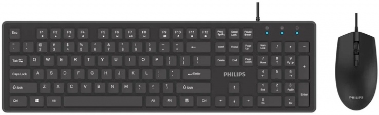 Клавиатура + мышь PHILIPS проводной комплект SPT6264, USB 2.0 104 клав/3 кнопки, 800-2400dpi, русская заводская раскладка, чёрный (SPT6264B/60)