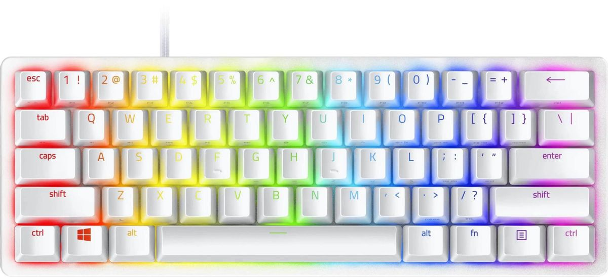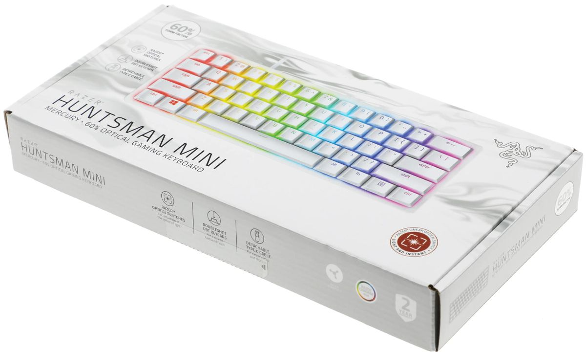 Клавиатура RAZER проводная, аналоговая оптическая, переключатели Linear Optical, подсветка клавиш, USB, Huntsman Mini, белый (RZ03-03392200-R3R1)