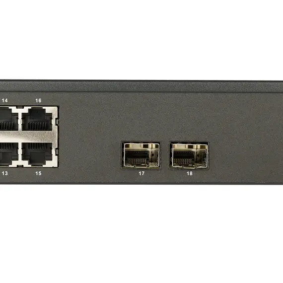PoE коммутатор, предназначенный для AVoIP решений. Оснащен 16 портами RJ45 10/100/1000 Мбит/с с автоматическим согласованием и поддержкой PoE, а также 2 порта SFP 1 Гбит/с, что обеспечивает полноскоростную передачу данных на всех портах.