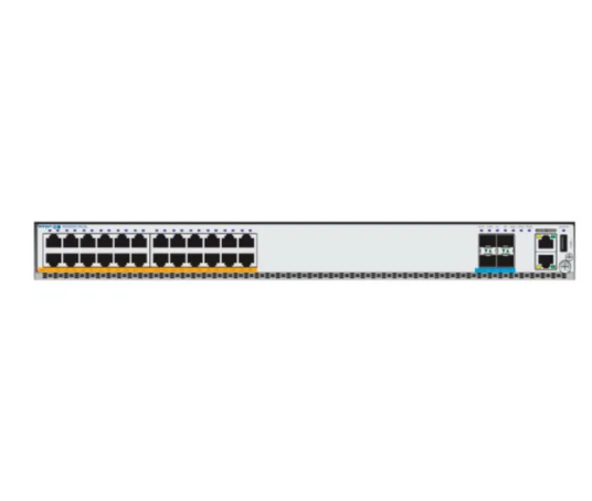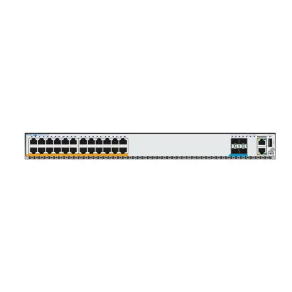 • 24 порта 100/1000M Base-T (RJ45): Обеспечивают широкие возможности для подключения различных проводных устройств – компьютеров, IP-телефонов, камер наблюдения и точек доступа – на гигабитной скорости. Поддержка 100M обеспечивает совместимость с устаревающим оборудованием.