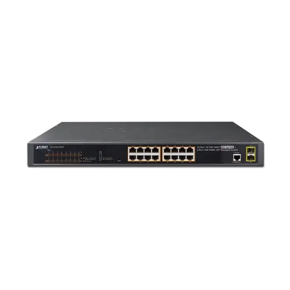 Коммутатор PLANET управляемый, 18 портов, уровень 2, поддержка PoE, установка в стойку (GS-4210-16P2S)