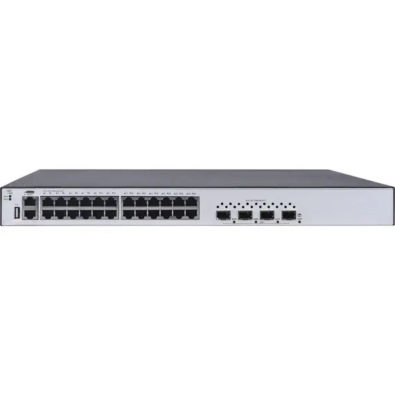 - 24 порта 10/100/1000Base-T: Оптимальное количество гигабитных Ethernet-портов с автоопределением скорости позволяет подключить множество рабочих станций, серверов, точек доступа Wi-Fi и других сетевых устройств, обеспечивая высокую плотность подключения.
