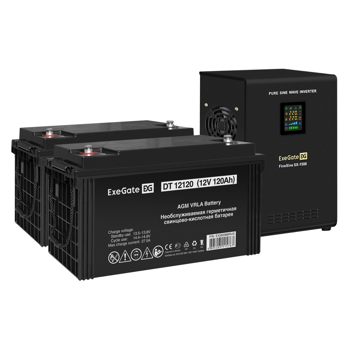 ИБП EXEGATE FineSine SX-1500.LCD.AVR.2SH + батарея 120Aч, 2 шт 1050 Вт, 1500 ВА (EX296579RUS)