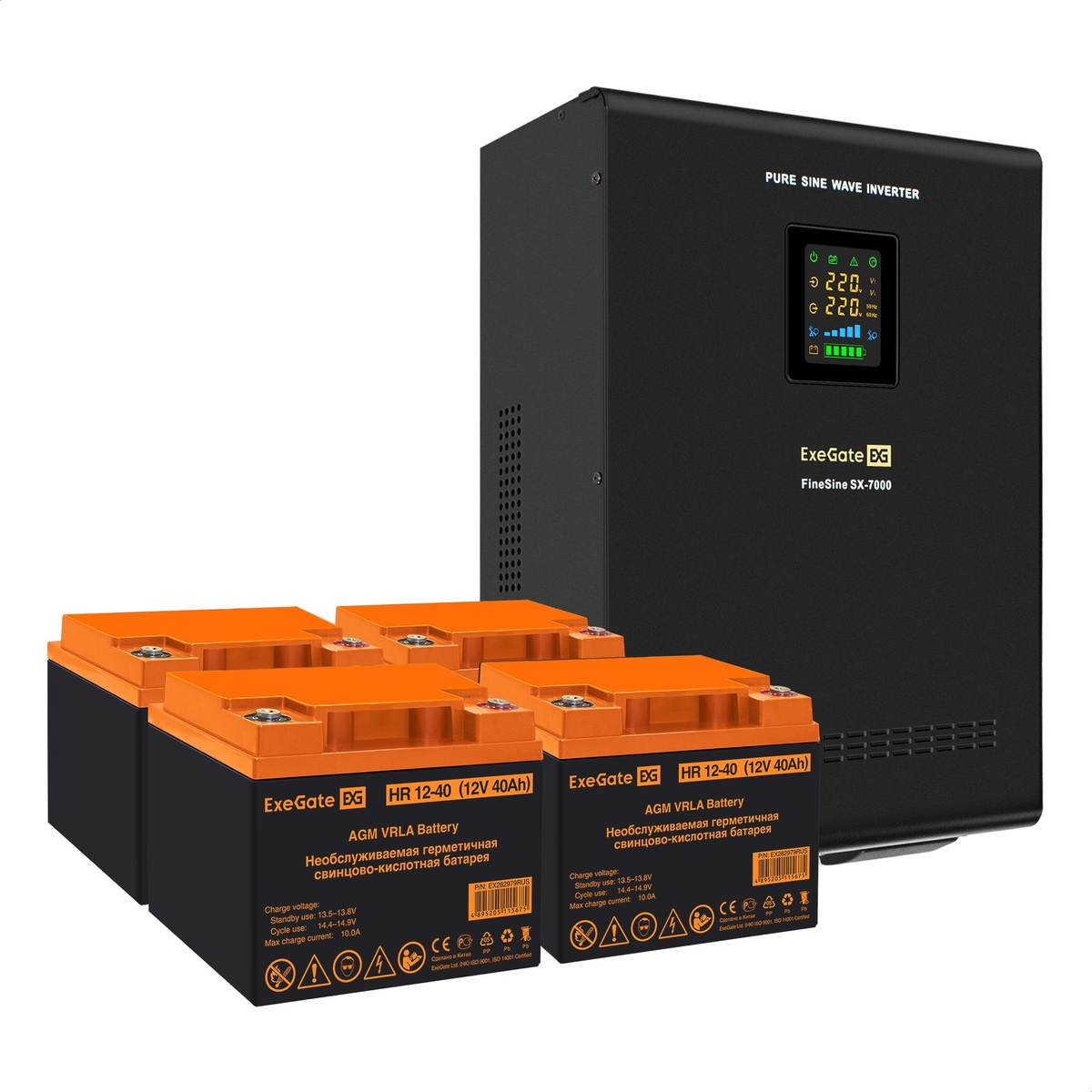 ИБП EXEGATE FineSine SX-7000.LCD.AVR.2SH.T + батарея 40Aч, 4 шт 5000 Вт, 7000 ВА (EX296682RUS)