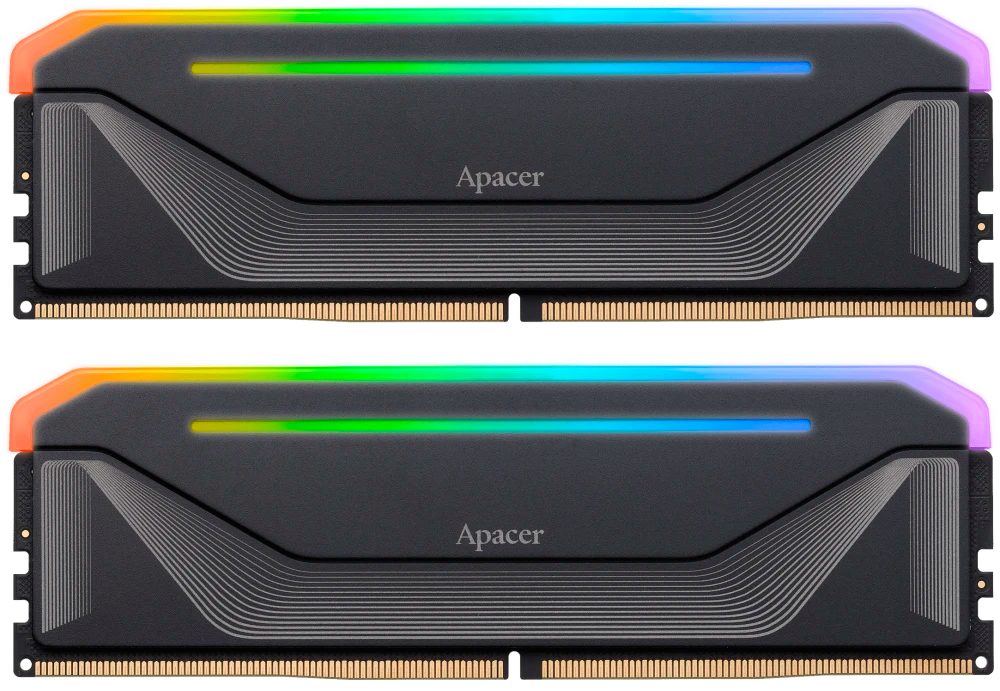 Комплект памяти APACER 32 Гб, DDR5 DIMM, 6000 МГц, NOX RGB Black 2 модуля, 48000 Мб/с, CL38, 1.35 В, EXPO, XMP, радиатор, подсветка, 2x16Gb KIT (AH5U32G60C622NBAA-2)