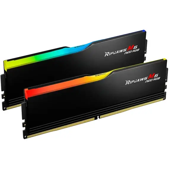 Комплект памяти G.SKILL 32 Гб, DDR5 DIMM, 6000 МГц, Ripjaws M5 NEO RGB Black 2 модуля, 48000 Мб/с, CL36, 1.35 В, EXPO, радиатор, подсветка, 2x16Gb KIT (F5-6000J3636F16GX2-RM5NRK)