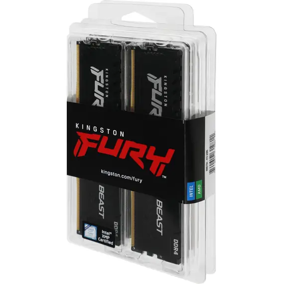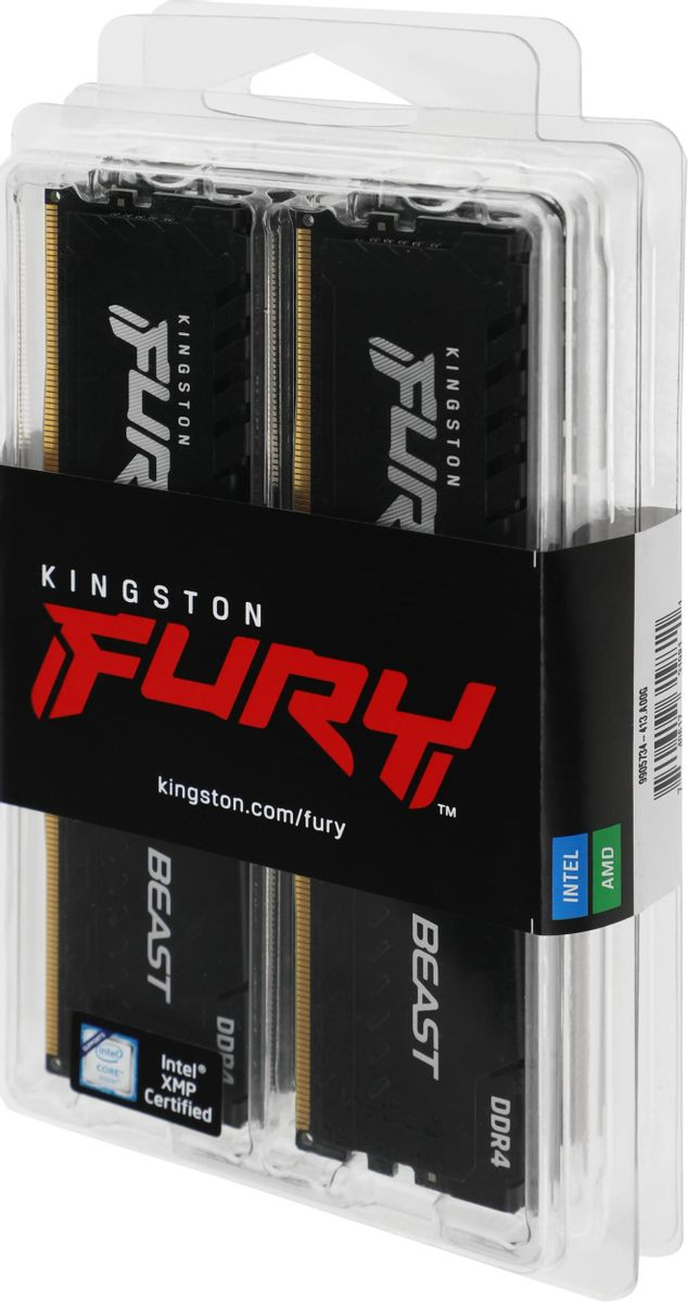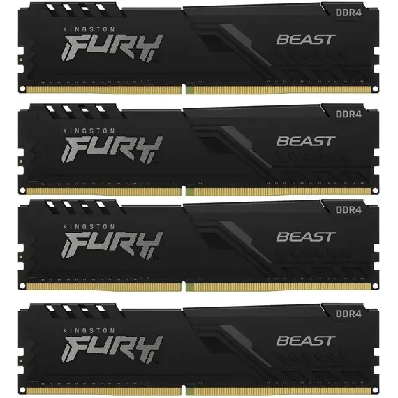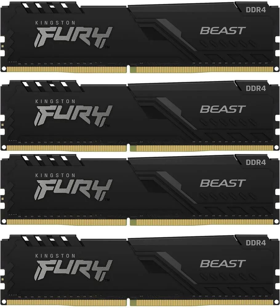 Комплект памяти KINGSTON 128 Гб, DDR4 DIMM, 3200 МГц, FURY Beast Black 4 модуля, 25600 Мб/с, CL16, 1.35 В, XMP, радиатор, 4x32Gb KIT (KF432C16BBK4/128)