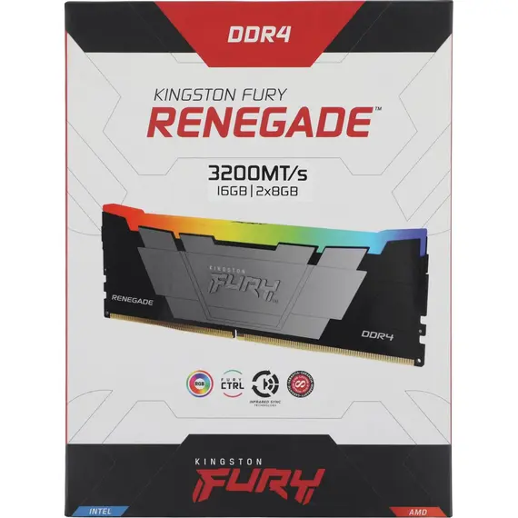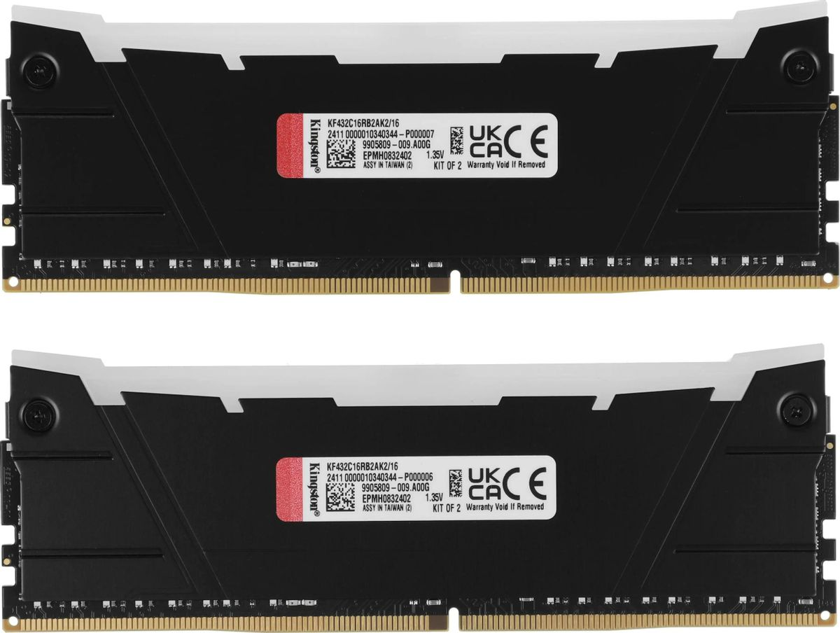 Комплект памяти KINGSTON 16 Гб, DDR4 DIMM, 3200 МГц, FURY Renegade RGB Black 2 модуля, 25600 Мб/с, CL16, 1.35 В, XMP, радиатор, подсветка, 2x8Gb KIT (KF432C16RB2AK2/16)