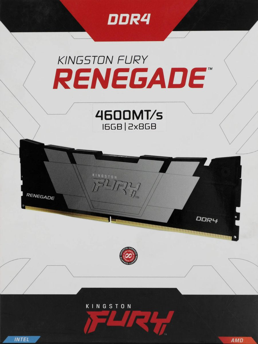 Комплект памяти KINGSTON 16 Гб, DDR4 DIMM, 4600 МГц, FURY Renegade Black 2 модуля, 36800 Мб/с, CL19, 1.5 В, XMP, радиатор, 2x8Gb KIT (KF446C19RB2K2/16)