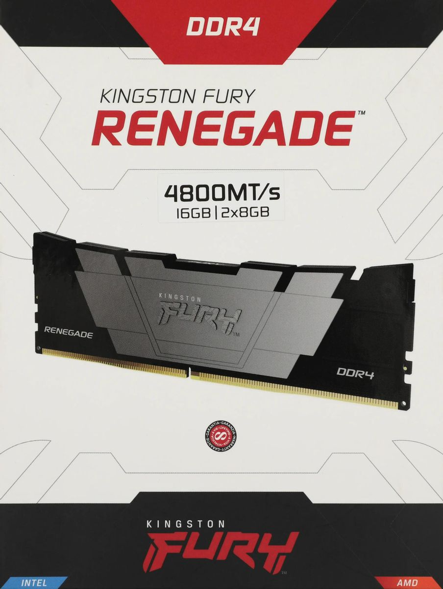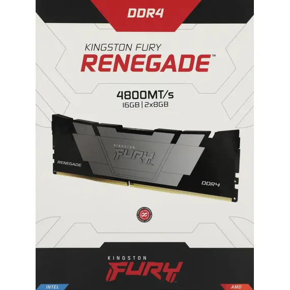 Комплект памяти KINGSTON 16 Гб, DDR4 DIMM, 4800M МГц, FURY Renegade Black 2 модуля, 38400 Мб/с, CL19, 1.5 В, XMP, радиатор, 2x8Gb KIT (KF448C19RB2K2/16)