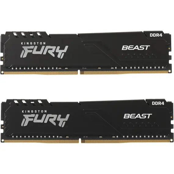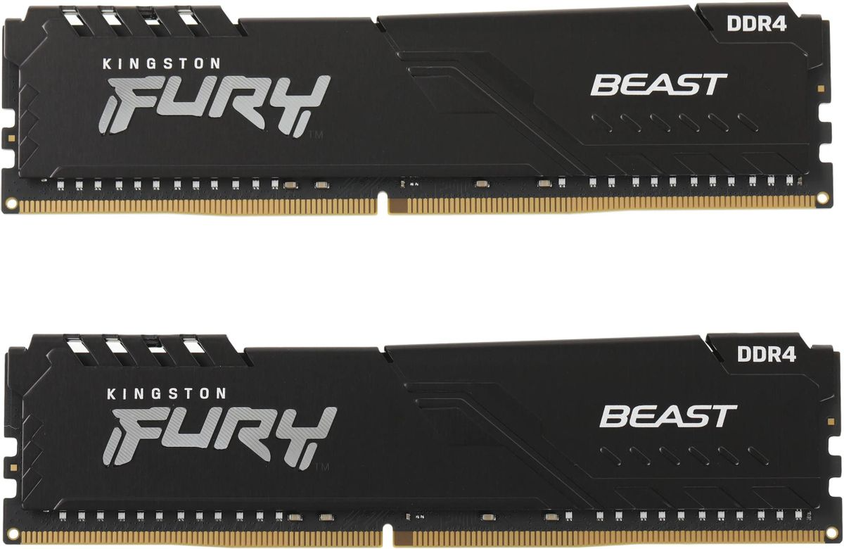 Комплект памяти KINGSTON 32 Гб, DDR4 DIMM, 3200 МГц, FURY Beast Black 2 модуля, 25600 Мб/с, CL16, 1.35 В, XMP, радиатор, 2x16Gb KIT (KF432C16BB1K2/32)