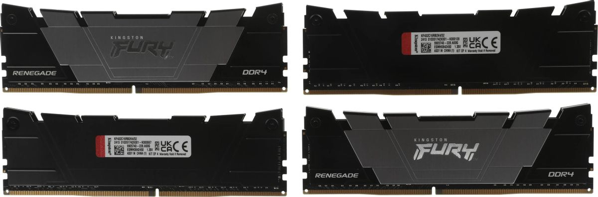 Комплект памяти KINGSTON 32 Гб, DDR4 DIMM, 3200 МГц, FURY Renegade Black 4 модуля, 25600 Мб/с, CL16, 1.35 В, XMP, радиатор, 4x8Gb KIT (KF432C16RB2K4/32)