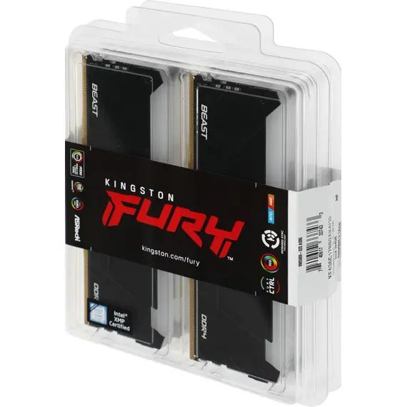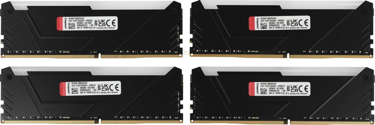 Комплект памяти KINGSTON 32 Гб, DDR4 DIMM, 3600 МГц, FURY Beast Black RGB Black 4 модуля, 25600 Мб/с, CL17, 1.35 В, XMP, радиатор, подсветка, 4x8Gb KIT (KF436C17BB2AK4/32)