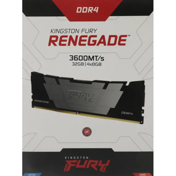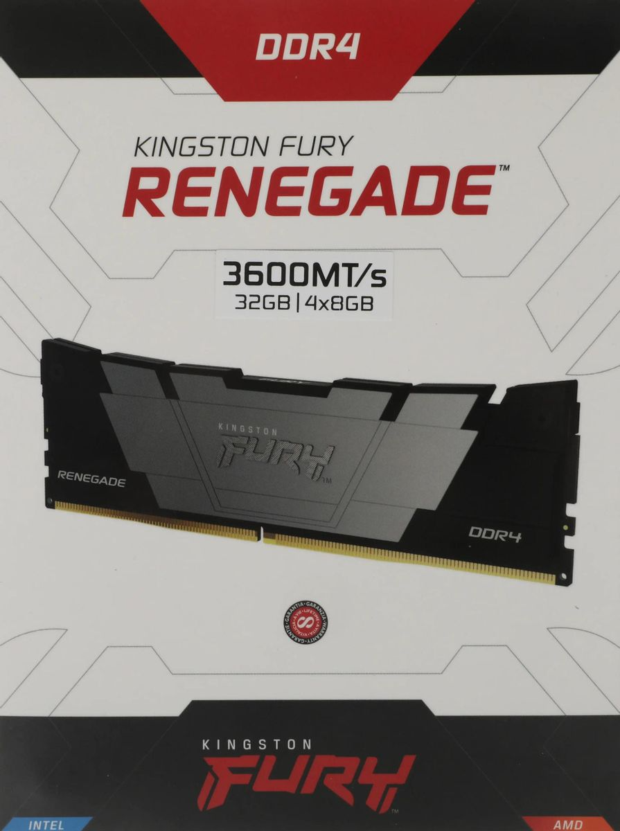 Комплект памяти KINGSTON 32 Гб, DDR4 DIMM, 3600 МГц, FURY Renegade Black 4 модуля, 28800 Мб/с, CL16, 1.35 В, XMP, радиатор, 4x8Gb KIT (KF436C16RB2K4/32)
