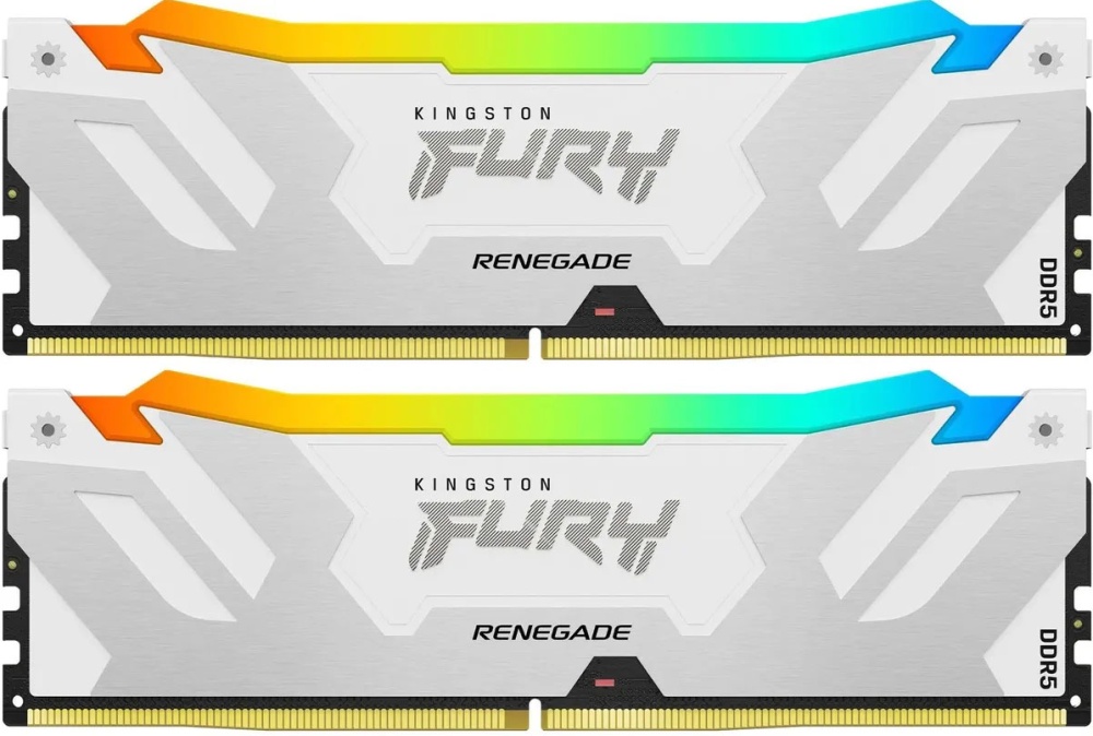 Комплект памяти KINGSTON 32 Гб, DDR5 DIMM, 7600 МГц, FURY Renegade RGB White 2 модуля, 60800 Мб/с, CL38, 1.45 В, XMP, радиатор, подсветка, 2x16Gb KIT (KF576C38RWAK2-32)