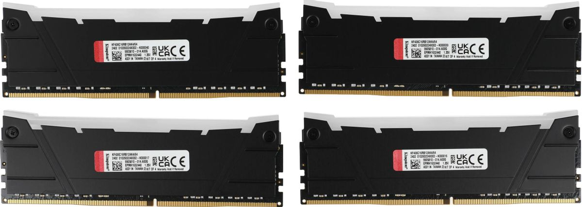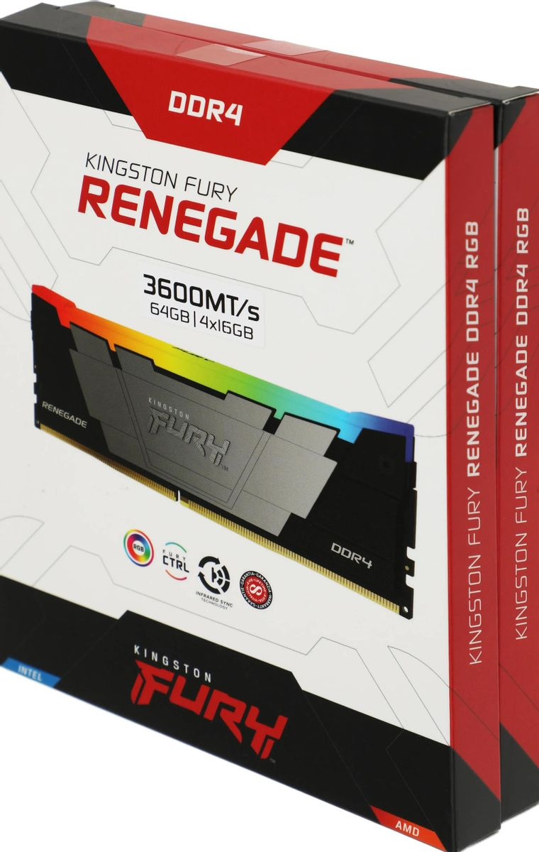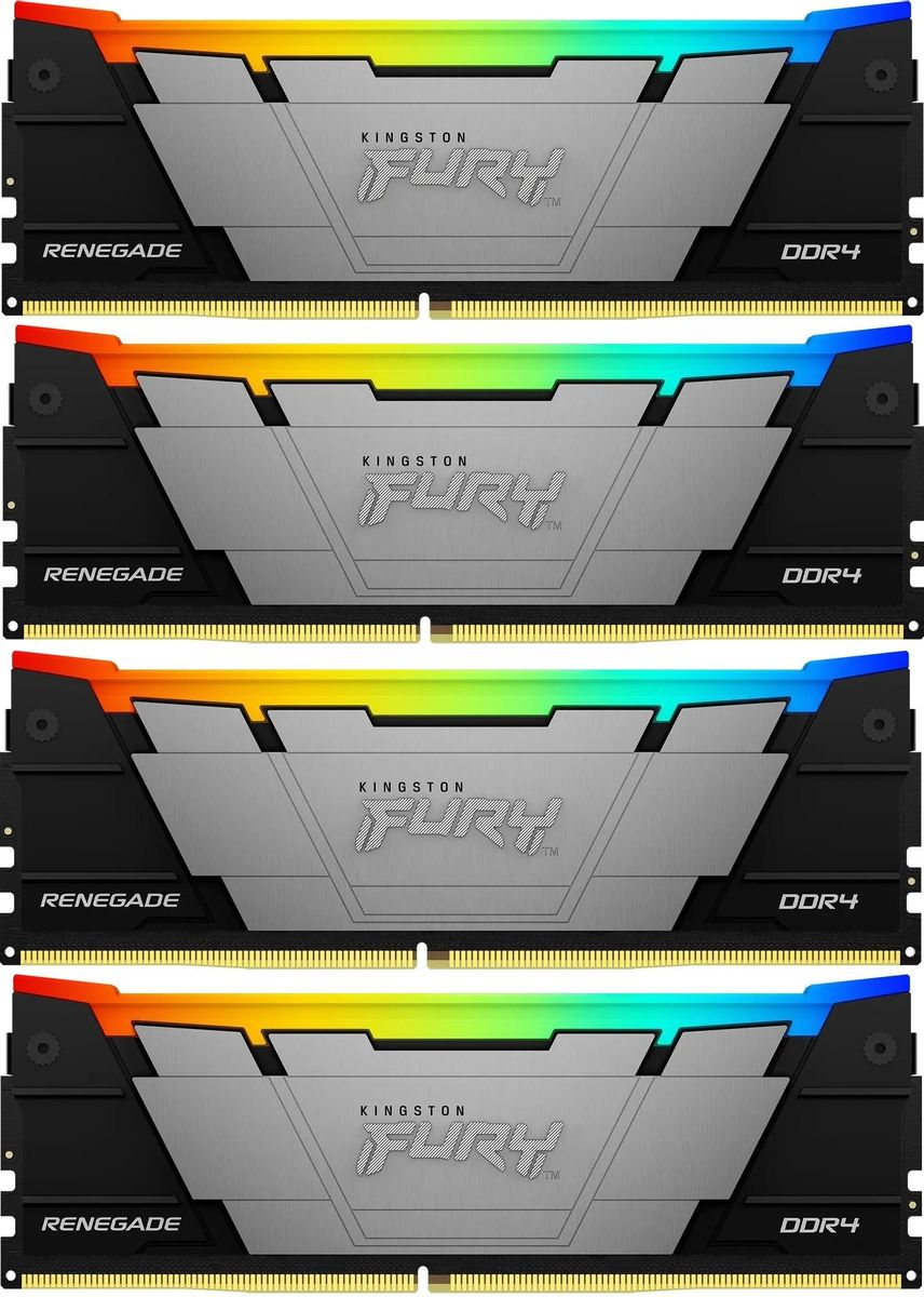 Комплект памяти KINGSTON 64 Гб, DDR4 DIMM, 3600 МГц, FURY Renegade RGB Black 4 модуля, 28800 Мб/с, CL16, 1.35 В, XMP, радиатор, подсветка, 4x16Gb KIT (KF436C16RB12AK4/64)
